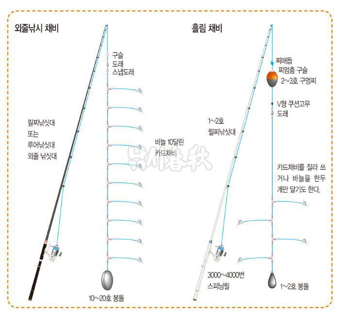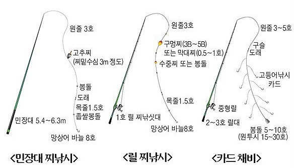낚시 준비물: 릴찌낚시 카드채비 vs. 민장대 찌낚시